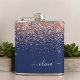 Rosa Rose Gold Navy Blue Glitzer Monogram Flachmann