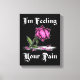 Dieses Design der Blume zeichnet sich durch einen einsamen rosa Rosenwelsch aus, der verzweifelt mit den Worten "Ich bin dein Schmerz Gefühl" in der Morose-Typografie verwirrt ist. Manche Menschen können den Schmerz anderer spüren, aber Worte allein drücken ihn nicht immer aus. Dies ist eine Möglichkeit, Ihre Schmerzen für die Verzweiflung anderer visuell auszudrücken. Dieses Design ist für jeden, der visuell poetisch oder einfach nur in melancholischer Stimmung ist.