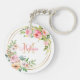Der hübsche Schlüsselanhänger mit Blumenmotiven aus Rosa und Weiß und die Grünpflanzen auf einem Rahmen aus Goldfolie. Sie personalisieren es in der Mitte mit Ihrem Namen und Initial. Die Rückseite hat ein ähnliches Design und ist auch mit Monogramm.