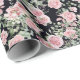 Hübsche Rosa- und Tornoptik-Blume auf schwarzem Hintergrund schaffen ein elegantes Blumenmuster auf diesem Geschenkpapier. Feiern Sie jeden Anlass mit dieser eleganten Geschenkpackung.