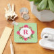 Entworfen auf der Basis meiner Aquarellbilder von rosa Rosen und rot-weiß Petunien. Ein zartes, blumengeschmücktes Kreidegebäude mit rosa englischer Rose mit feinen Details von Rose Knospen und grünen Blätter mit bunten, mehrfarbigen, roten Blättern. Das Design ist in der Mitte mit rosa Monogramm initialisiert, das nach Ihren Wünschen angepasst werden kann
