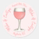 Rosa Rosé Rose Weinglas Hochzeitsstich Brautparty Runder Aufkleber