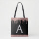 Rosa Rose Gold und schwarze Imitate Sparkle und Dripping Glitzer Elegant Monogram Book Bag. Diese Büchertasche kann auf Ihren Vor- und Vornamen angepasst werden und als Geschenk für Weihnachten, Geburtstag, Brautparty oder Hochzeit.