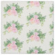 Die Grafik auf diesem Stoff hat ein schönes altmodisches Aussehen mit einem Bouquet von drei rosa Cabbage-Rose mit Farn und Eukalyptusgrün.