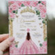 Alle Texte können für jeden Anlass bearbeitet werden. Rosa Rosen, rosa Blumen, elegante Rosa und Gold Quinceanera Einladung, rosa Quitte, rosa Blumen Geburtstagseinladung.