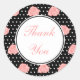 Hübsche rosa Rosen schmücken diesen schwarz-weißen Polka Punkt, danke Ihnen Aufkleber. Nutzen Sie diese eleganten Aufkleber für Hochzeiten, Brautparty, Gastgeschenke, Gastgeschenke Hochzeiten, Business, etc...Das Design stammt aus der Originalkunst.