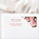 Diese Hochzeitsetiketten zeigen rosa Rosen 3D-Blumen auf weißem Hintergrund.