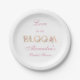 Personalisieren Sie diese Papiertafel aus Brautparty "Liebe ist in Bloom", um Ihre Gäste mit seinem eleganten Charme zu verzaubern. Auf jedem Teller stehen rot-rosa Rose, die mit üppiger Vegetation harmonisch verbunden sind. Das Set vor einem knalligen, weißen Hintergrund erinnert an einen blühenden Garten. Die goldene Schrift, die zarte Spitze und die blumengeschmückten Details sorgen für eine Touch von Weiblichkeit und Raffinesse, die diese Teller perfekt für ein elegantes Party oder ein Mittagessen im Garten machen. Die Aquarellblütengestaltung erfasst die Schönheit der Natur und bringt das Wesen eines malerischen Gartens direkt an Ihren Tisch. Ob Sie ein skurriles Picknick oder ein üppiges Party im Garten veranstalten, diese Teller werden Sie bestimmt beeindrucken. Ihre zeitlose Anziehungskraft und romantische Farbtöne schaffen einen schönen Rahmen für die Feier der Braut zu sein. Lass dein Brautparty blühen mit diesen "Liebe ist in Bloom" Papier Teller.