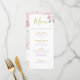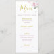 Hochzeitliches Rosa und Gold Modernes elegantes Hochzeitsmenü. Ein maßgeschneidertes Wedding Menu Design mit Ihren Informationen leicht zu ändern, um Ihre Hochzeitsfeier zu personalisieren. Persönliche Hochzeit stationär von Chessie's Fine Designs.