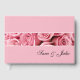 Dieses Gästebuch wird in Rosa mit einem hübschen, blumenrosa Rosenakzent gezeigt. Weiße Seiten mit Zeilen. Passen Sie dieses Buch an und ändern Sie die Beispielnamen nach Ihren Bedürfnissen.