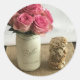Rosa Rosen in einem Canning Jar und Cookies Classic Round Sticker ... Bäckerei, Café, Dusche, Baby, Geschenk, geschäftliche oder private Nutzung.