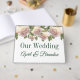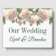 Ein wunderschönes Vintages Design von romantischen, rötlich-pfirsichfarbenen Rose, die in grünen Blätter mit eleganter Kalligraphie gerahmt sind.