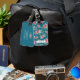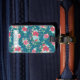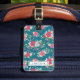 Dunkler aquamariner Gepäckumbau mit einem Muster der rosa Rosen, der blauen Blumen und der Kirschblüte. Personifizieren Sie mit Ihrem Namen auf der Abdeckung und Name und Anschrift auf der Rückseite.