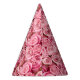 Dieser Partyhut wird mit rosa Rosen gezeigt. Ganz über Druck.