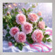 Weich rosa Rosen mit ihren üppigen, geschichteten Blütenblättern. Diese Rose sind Set vor einem zarten Hintergrund, der Schneeklänge und ein traumhaftes, funkelnd Ambiente beinhalten kann. Die Blätter sind grün und kontrastieren wunderschön mit den rosa Blume. Ein Strang aus rosa Perlen ist zwischen den Rose verwoben und verleiht der Komposition eine elegante Touch. Das Ganze weckt ein Gefühl von Schönheit und Romantik, beleuchtet durch ein sanftes, warmes Licht, das die sanften Farbtöne der Blume verstärkt.