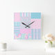 Eine hübsche und feminine Wall-Uhr, mit einem Imitat Patchwork-Muster aus hellrosa Rosen auf himmelblauem Hintergrund, gepunktet mit kleinen weißen Schmetterlingen, kombiniert mit dem passenden Karo Ginghams, Polka Dots und Striping Patterns. Teil der Posh & Painterly 'Summer Days' Kollektion. (Dieses Muster kann leicht an jede beliebige Uhr angepasst werden.)