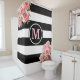 Rosa Rosen Schwarz und Weiß Streifen Monogramm Duschvorhang