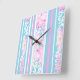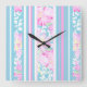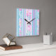 Rosa Rosen, türkisfarbene Streifen: quadratische W Wanduhr