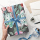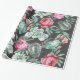 Rosa Rosen und saftiges Kaktus-Muster auf Geschenkpapier