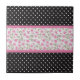 Rosa Rosen und schwarze und weiße Polka-Punkte Fliese
