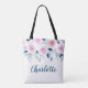 Elegante rosa Rosen und blauer Blätter Watercolor entwerfen mit kundengerechtem Text für einen Namen oder ein Monogramm auf einer Taschentasche.