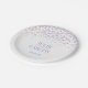 Schöne stylisierte Grafik Konfetti verstreuten Punkte fügen Ihre eigenen Hochzeitnamen und Hochzeitstag Papier Teller. Eine großartige persönliche Ergänzung zu Ihren Hochzeitstischen oder nach einem Hochzeitsdrink oder einer Hochzeit nach dem Party. Personalisieren Sie die Namen Ihrer Braut und Bräutigam. Ideal für einen rosafarbenen Rosenquarz und für eine gemütliche Hochzeit, eine Verlobung oder ein Jubiläum. Originelle Kunst und Design von Sarah Trett.