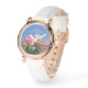 Diese Uhr zeigt einen rosa Rosenbusch unter einem blauen Himmel. Hübsche personalisierbare Geschenkidee für Frauen!