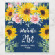 Niedliche und stilvolle Bohobarden-gelbe Sonnenblumen und rosa Rosen auf marineblauen 21. Geburtstag Party Picknick-Weinflasche für Frauen. Text ist für jedes Ereignis, das Sie planen, anpassbar.