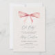 Eine entzückende Einladung zur Babyparty mit einer süßen rosa, roten und beigefarbenen Wasserfarbe-Coquette-Schleife.