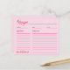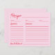 Rosa rote Brautparty-Rezept-Karte handschriftlich