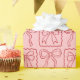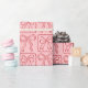 Dieses Verpackungspapier verfügt über ein Raster aus rosa und roten Bandbögen.