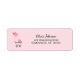 Ein weich rosa Rücksendelabel mit rosa Ballons und einem Stollen. Ideal für Babyduscheinladungen und Geburtshinweise.