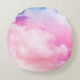 Rosa, Ruhe, Blau, gelbe Wolken und Himmel. Abstrak Rundes Kissen