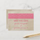 Einfache und elegante Rustikale Spitzen Save the Date Postcard mit einem Vintagen Texturlook im Hintergrund und einem süßen und tönigen Spitzen-Rahmen in magenta. Einfach anpassen, einfach Ihre Hochzeitsdetails hinzufügen. Klicken Sie auf "Anpassen", um weitere Personalisierungsoptionen zu erhalten.