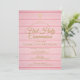 Eine rustikale erste heilige Kommunion Einladung mit Ihrem besonderen personalisierten Details Set in schicken goldenen Typografie auf einem rosa Holzpaneelenboden. Entwickelt von Thisisnotme©