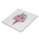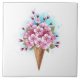 Süßer Waffelkonus mit frischen, rosafarbenen japanischen Kirschblüten auf weißem Hintergrund mit blauen Wasserfarben. Rosa japanische Kirsche.
