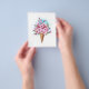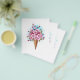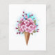 Süßer Waffelkonus mit frischen, rosafarbenen japanischen Kirschblüten auf weißem Hintergrund mit blauen Wasserfarben. Rosa japanische Kirsche.