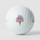 Süßer Waffelkonus mit frischen, rosafarbenen japanischen Kirschblüten auf weißem Hintergrund mit blauen Wasserfarben. Rosa japanische Kirsche.