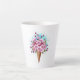 Süßer Waffelkonus mit frischen, rosafarbenen japanischen Kirschblüten auf weißem Hintergrund mit blauen Wasserfarben. Rosa japanische Kirsche.