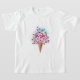 Süßer Waffelkonus mit frischen, rosafarbenen japanischen Kirschblüten auf weißem Hintergrund mit blauen Wasserfarben. Rosa japanische Kirsche.