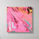 Abstrakte fantastische Landschaft in kräftigen Rosa-, Blau- und Orangetönen. Fluid Art Acrylmalerei.