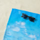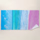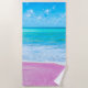 Dieses schöne Badetuch verfügt über ein wunderschönes Foto eines tropischen Strandes mit rosa Sand.