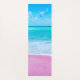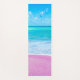 Diese Yogamat verfügt über ein Foto eines tropischen Ozeanstrands mit rosa Sand, ideal für Yogi, die Lieben zu exotischen tropischen Orten mit schönen Stränden zu reisen.