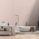 Hübsche, rosa, graue und satinierte Punktschalen und Tapeten-Stile für eine akzentuierte Wand, oder andere Oberflächen wie die Innenlehnen von Regalen, Schränken, Frisierern und Kühlschränken. Sei kreativ und denke aus der Schachtel!
