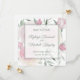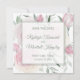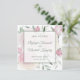 Verkünden Sie Ihren bevorstehenden Hochzeitstermin mit moderner Eleganz. Die rosa Rosen und das Grün füllen den Hintergrund, während ein Overlay zentriert ist und die Namen des Paares, den Hochzeitsort und das Datum anzeigt. Hinter den Save-the-Date-Infos ist ein Blick auf den floralen Hintergrund zu sehen.