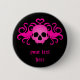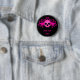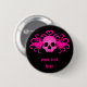 Adorable Button auf Knopfdruck in Schwarz mit einem heißen, rosa Reißkopf mit einem Herz auf der Oberseite und Wirbel auf der Vorderseite bedruckt. Unten ist Platz für Text.