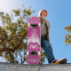 Trio flammender Schädel in rosa Farbtönen mit rosa gemustertem Hintergrund. Text liest GIRLY SKATE - MÄDCHEN REGEL!