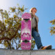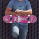 Trio der lodernden Schädel entwarf in den Farben des rosa Sets nach einem rosa gemusterten Hintergrund. Text auf die Oberseite liest "Girly Skate" und Unterseitentext liest "Mädchen anordnen!"