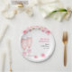 Rosa Schleife Blumen und Prosecco-Junggesellinnen- Pappteller