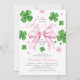 Glücksbringer-Babyshower-Einladung mit rosa Schleife | St. Patrick's Day Babyshower